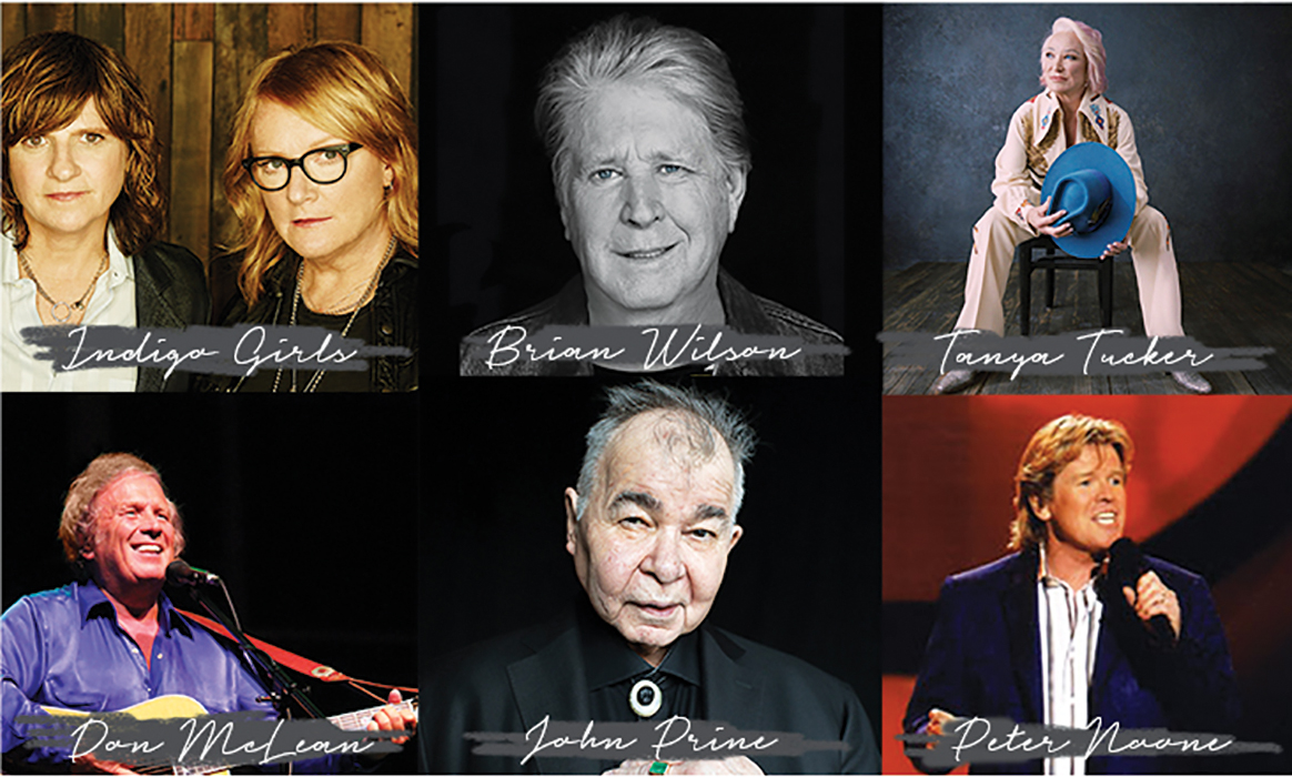The initial round of confirmed headliner artists at Grand Boulevard on Sat., Jan. 18 include iconic artists John Prine, Indigo Girls and Tanya Tucker. On Sun., Jan. 19, the legendary Brian Wilson, Don McLean and Herman’s Hermits starring Peter Noone will perform.