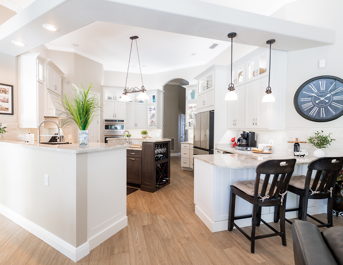 Apex Design Center is thrilled to celebrate its feature remodel for 2024, showcasing a stunning transformation that has set a new benchmark for excellence in home design in Niceville. This ambitious project involved a full kitchen remodel, alongside the creation of three elegant vanities, a custom shower, laundry room built-ins and new tile flooring that flows seamlessly throughout the main areas of the house. Our dedicated team collaborated closely with the client to ensure that every detail was meticulously crafted to perfection, resulting in a space that radiates both beauty and functionality.