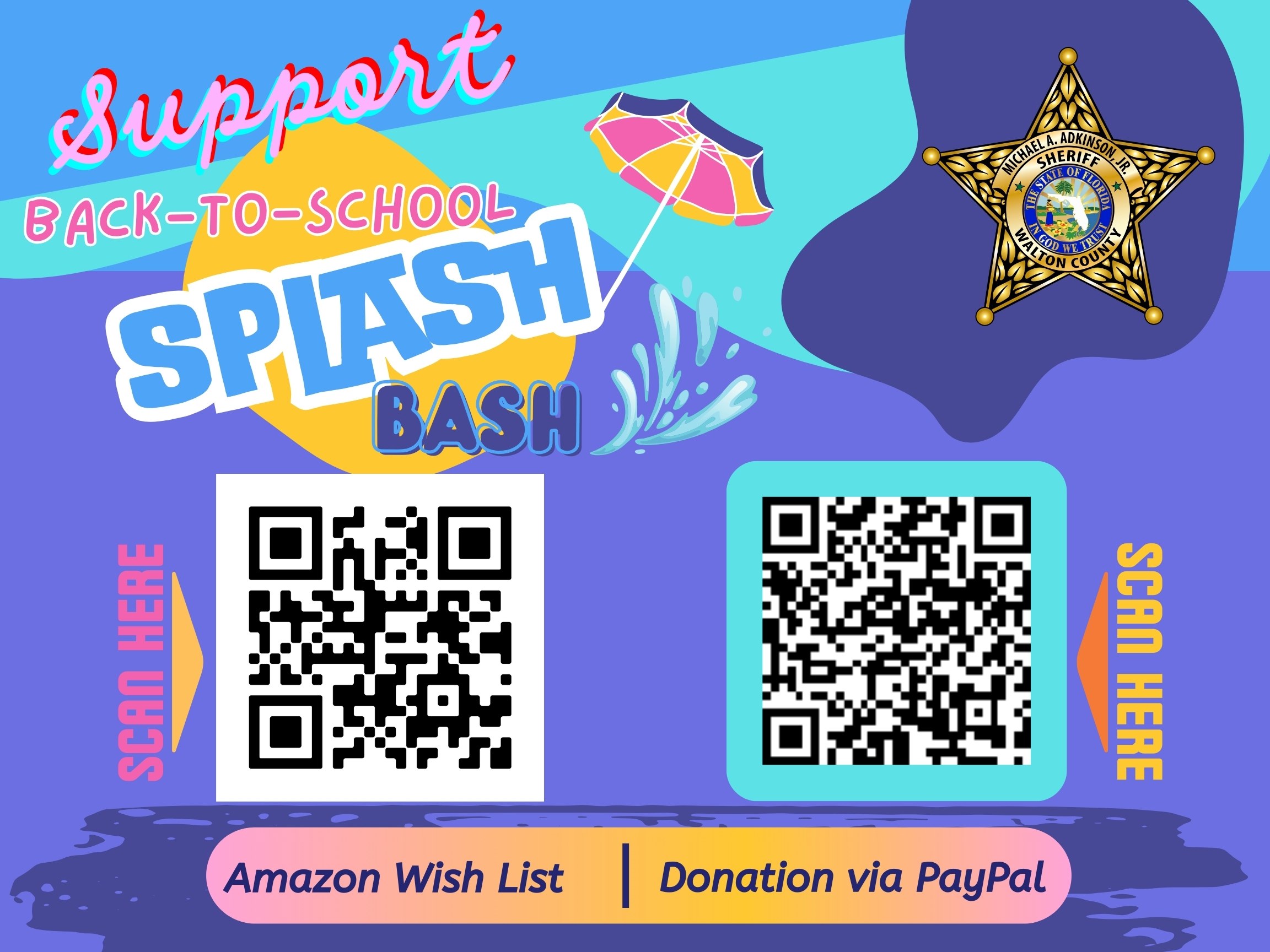 Support the WCSO Back-to-School Splash Bash Through Amazon Registry or Paypal Donation
