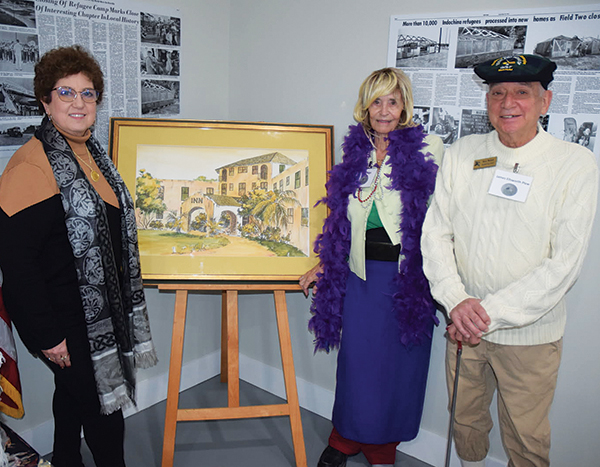 Written and directed by Barbara Palmgren, the following characters came to life and the audience learned about the history of Valparaiso. The historic characters were James Plew, played by Ken Walsh; Lula Edge, played by Barb Palmgren; and Addie Lewis. played by Susan Page. Mike Weaver supported with sound and music. All four volunteers are on the Board of Trustees for the Heritage Museum of Northwest Florida. In the photo you see the cast standing in front of a beautiful picture of the famous Valparaiso Inn. In the background is part of the first new exhibit for the room addition, the 1975 Vietnamese refugee Camp. This is the 50th anniversary of Eglin Air Force Base housing over 10,000 refugees over five months at the end of the Vietnam war.