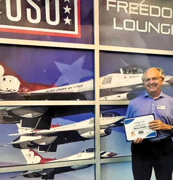 Mid-Bay Rotarian Henry Snider was recently recognized as the Destin-Fort Walton Beach Airport (VPS) United Services Organization’s (USO) Volunteer of the Year (2024). Henry volunteers for two, three-hour shifts each week at the VPS USO Center [Freedom Lounge]. The Center provides free internet services, program information, snacks and drinks to service members and their dependents while they are traveling through the airport. Henry has been volunteering with the USO for over 15 years. Congratulations!