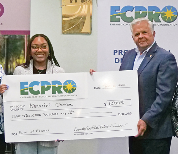 Kennedi Carter, a recent graduate of Niceville High School, was awarded a $1,000 scholarship from the Emerald Coast Public Relations Foundation (ECPRF). The Foundation, the non-profit arm of the Emerald Coast Public Relations Organization (ECPRO), awards the scholarship annually to a graduating senior in Santa Rosa, Okaloosa or Walton County who plans to pursue a college degree in public relations, journalism, marketing or communication. Kennedi graduated Summa Cum Laude from Niceville High School with a 4.61 GPA, was a National Honor Society member and an AP Scholar with Distinction. She will attend the University of Florida and major in marketing. Funding for the scholarship was made possible with the support of Eglin Federal Credit Union, the Niceville office of Carr, Riggs & Ingram, and Cherie Anderson of Merrill Lynch.
