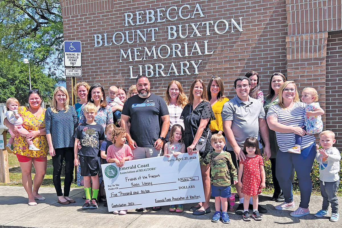 The Rebecca Blount Buxton Memorial Library, aka the Freeport Public Library, dove into “Oceans of Possibilities” on Tuesdays as the theme of this season’s 2022 Summer Reading Program, thanks to the Emerald Coast Association of Realtors (ECAR). ECAR’s generous donation of $5,000 covered nearly all costs of this yearly program. From live animal encounters, to story tellers, the Summer Reading Program encourages school-aged children to earn tickets for raffle prizes, through reading and other community activities. The Friends of the Freeport Public Library (FFPL) would like to thank North Walton Director for ECAR, Rick Gonzalez and Treasurer Amanda Grandy for the check presentation and the sponsorship for this year’s events. According to Rick, the donation was part of the Association’s efforts to give back to communities along the Emerald Coast. As Freeport grows, the Public Library continues to offer needed events and activities for persons of all ages, and relies on volunteers to assist as such. If you have a skill you would like to offer, please contact the library at (850) 835-2040. Pour painting, Jewelry design, Rock Painting, Yoga, Basket Weaving are examples of past volunteer led programs. “Like” Friends of the Freeport Public Library on Facebook to keep up with the exciting FFPL news. Thank you to all our patrons, volunteers, staff and sponsors.