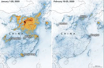 The nitrogen dioxide emissions and production of greenhouse gasses over China have dropped over 25% since the Corona virus pandemic began significantly reducing air pollution. This can also be seen in the smog over Los Angeles and all of Northern California. Historical data from the EPA suggests that this may be the longest stretch of clean air there since 1980. Beirut Lebanon, a city known for high levels of pollution, has also shown much clearer skies and improved air quality. Similarly, it is said that inhabitants in India can see Mt. Everest and the peaks of the Himalayan mountains which haven’t been visible for thirty years due to pollution.
