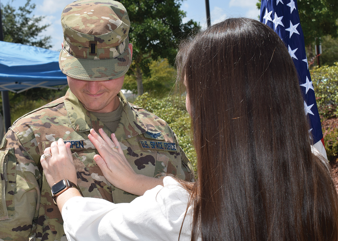 More than 30 officers and enlisted military members were among the first to join the newly formed United States Space Force during a recent swearing in ceremony. Those members were former Airmen with the 20th Space Control Squadron. After being sworn in to the new military branch, squadron personnel exchanged Air Force spice brown for Space Force blue thread uniform insignias and a full color American flag worn on their left shoulder. “I am extremely honored and humbled to be one of the founding members of the U.S. Space Force,” said 1st Lt. Conner Thigpen, 20th SPCS crew commander. “The military provided me with an incredible opportunity and I am excited to continue my service to the nation by protecting U.S. and Allied interests in space.”