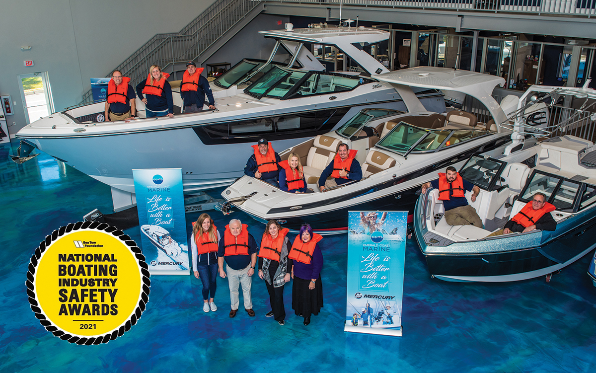 Emerald Coast Marine was one of six marine industry organizations recently recognized by the Sea Tow Foundation for its exceptional boating safety campaigns and initiatives in 2021, winning the prestigious “National Boating Industry Safety Award” for the ‘Retailer with One to Three Locations” category. “Emerald Coast Marine created an integrated campaign including an extensive social media initiative featuring a mix of online boating education resources, along with a new series of boating safety videos produced internally that show it is possible to accomplish a lot with limited resources,” said Sea Tow Foundation Executive Director Gail R. Kulp. “In addition, the dealership underwrites the cost and promotes in-person boating safety classes in partnership with the USCG Auxiliary, along with promoting boating safety in its monthly newsletter. They also promoted National Boating Safety Week with a custom video featuring every member of the dealership team wearing life jackets.” Ongoing boating safety programs are slated for 2022 including seven months of seasonal boating safety training programs held in conjunction with the U.S. Coast Guard Auxiliary; a dedicated on-site boating safety event including vessel checks with the auxiliary in March; ladies boating events/classes; and a continued emphasis on boating safety via live seminars, social media and video messaging.