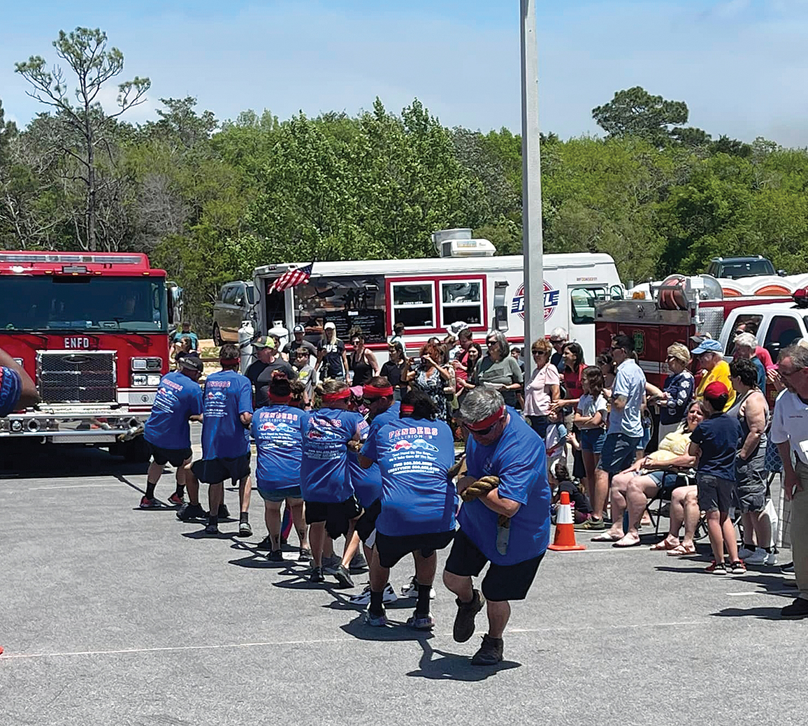 Four Rotary Clubs and community organizations from Okaloosa County pulled together recently to raise more than $15,000 for a major project at Twin Cities Pavilion in Niceville. The Community Fire Truck Pull attracted 16 10-person teams who paid $250 to see who could pull a fire truck 50 feet in the fastest time. Funds raised will be used to refurbish the TCP’s front entrance area used by residents for sitting and relaxing outdoors.