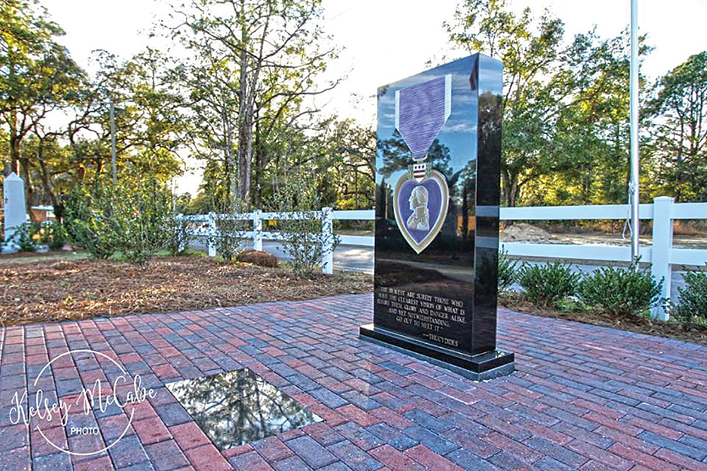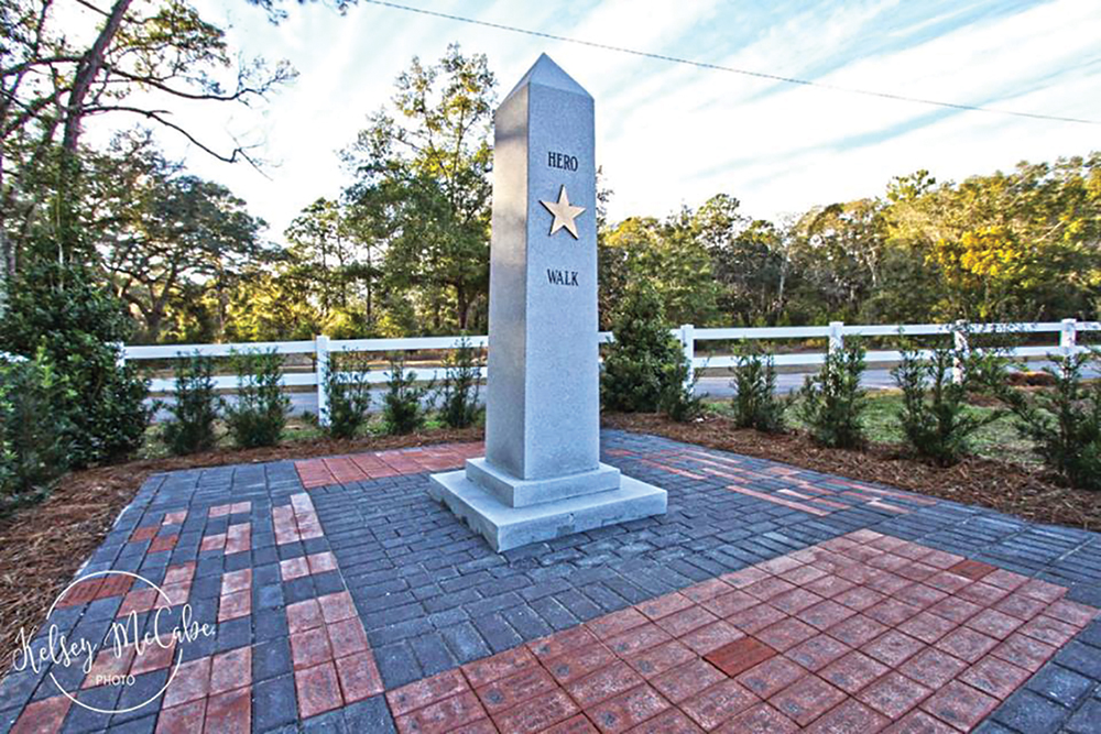 When the initial area donated by the city of Freeport was filled and the committee felt its job was complete, “the community had other plans,” said Tim. “We were constantly being approached regarding a project that would allow local families to buy bricks to honor or memorialize their veterans.” So, in 2015 the Freeport City Council allowed for park expansion by donating land west of the sidewalk. There, in 2016, the HERO WALK monument and brick walk was dedicated. The addition of a beautiful PURPLE HEART memorial honoring all of our combat wounded was dedicated by Purple Heart recipients in 2017 sponsored by the St. Joe Community Foundation.