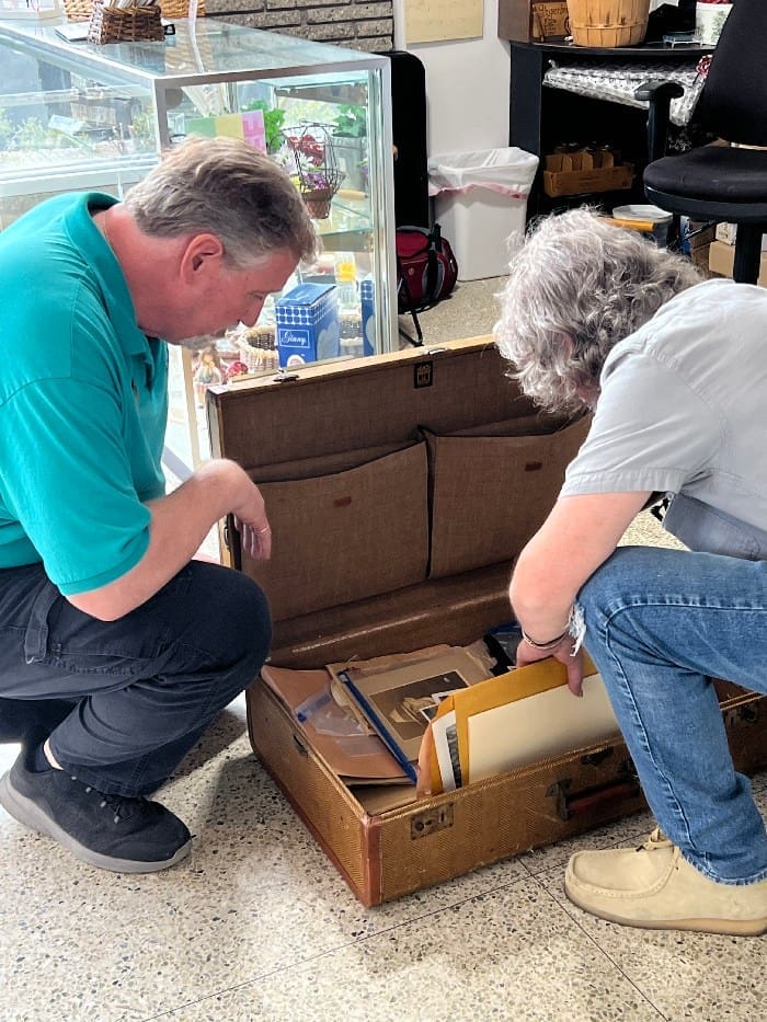 Two glass cases also house treasured heritage items from early Valparaiso residents. The Museum extends its appreciation to Marion Ruckel, fourth-generation direct descendant of James Plew, and to the Spence family for sharing prized artifacts. Additional thanks go to Mrs. Windy Horton, great-great-granddaughter of John Perrine—who named the city of Valparaiso—for donating several never-before-seen photographs.