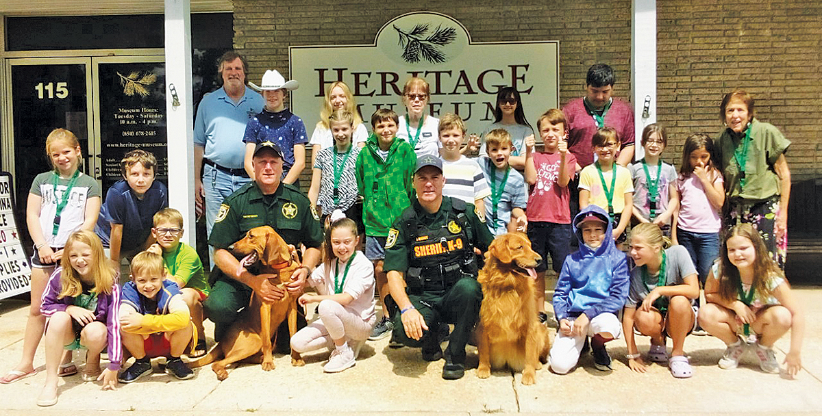 The Heritage Museum hosted two weeks of Summer Camp in July and received some amazing parent reviews. It included popular Instructors such as Karl Eschmann: American Revolution History; Okaloosa County Sheriff’s Department: K-9 Demonstration; Valparaiso Garden Club: Plant Life; Kelly Rodriguez: Potholder Looms; Sherman Bronx: Bee Keeping; Dr. Marie Hallion: Mad Hatter Tea Party and John Faye: Aerospace Rockets. The museum staff and board thanks the volunteers and trustees that helped give the kids a wonderful camp experience: Connie Wolfe, Dottie Steele, Jo ann Noris, Dr. Marie Hallion, Natalia Gisel, Sherman Broxson, Lily Harrison, Michelle and Ethan Hyland.