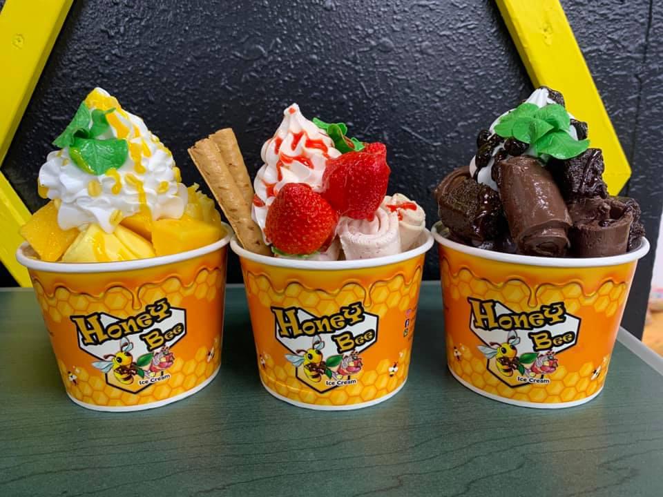 Honeybee Ice Cream and Arcade boasts 32 flavors of five-star Wisconsin ice cream and 17 ice cream roll flavors – ice cream spread out on a cold plate, chopped up and rolled up into a cup, “making it picture-worthy.” It also provides 24 flavors of snow cones and a large selection of fruit sodas and, in addition to the ice cream, will make milkshakes with any of the flavors, as well as sundaes and pizza by the slice.
