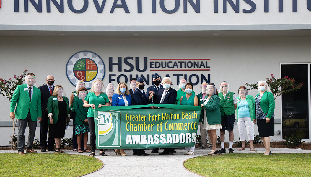 On June 25 the HSU Educational Foundation hosted a ribbon cutting ceremony in tandem with the Greater Fort Walton Beach Chamber of Commerce’s Business After Hours event to unveil the new HSU Innovation Institute, a facility centered in the Fort Walton Beach Commerce and Technology Park, designed to inspire innovation among both the youth and professional community.