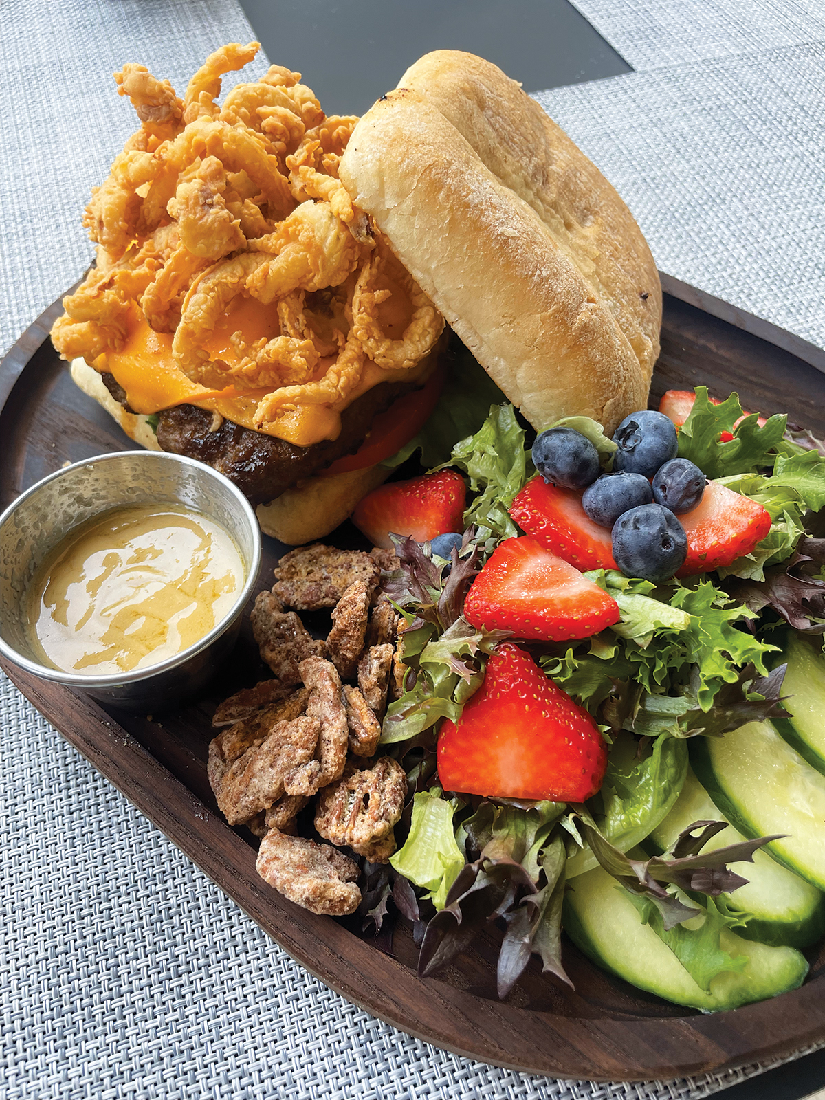 amed after “LJ Schooner” (the LJ is for Lazy Jack), a cherished four-legged icon on Bluewater Bay Marina docks, the open-air oyster bar and restaurant offers a magnificent view of the water, marina and unparalleled sunset any time of year. There are, of course, oysters and a delicious varied menu with dinner specials such as blackened mahi and grilled shrimp with hollandaise, served over cheese grits.
