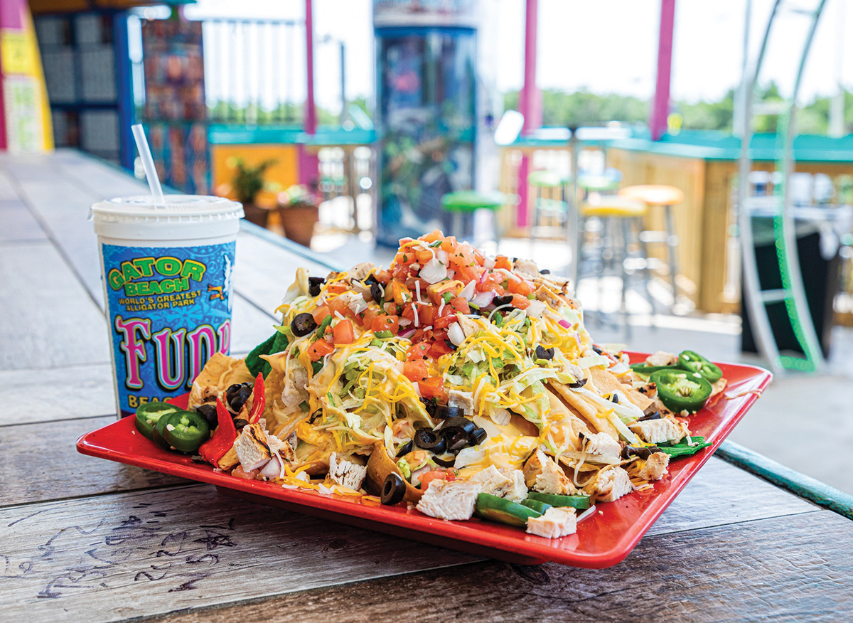 Fudpuckers food 3Locally owned and operated since inception in 1982, Fudpucker’s restaurant stands out by being dedicated to its owners’ three favorite “F” words: Food, Fun and Family. Featuring live alligators, family entertainment and teen nights, Fudpucker’s is the only place in Destin where you can see, feed and even get your picture taken with a live alligator, shop for “World Famous’’ t-shirts, write your names on the walls, play arcade games and enjoy quality casual food in an upbeat and family friendly atmosphere. There’s even a special kids’ menu and a playground with lots of space to play. Stop by Fudpucker’s Destin for a relaxing meal, a cold drink and a friendly locals’ smile. Fudpucker’s is not just a restaurant, it’s not just a bar, and it’s certainly not just a “tourist” place – it’s a one-of-a-kind entertainment experience, and one that can be enjoyed by kids and families of all ages. Special: World Famous Fudpucker Punch – $8 ’til 4 p.m. every day: Father Fud’s special cure-all elixer and legendary medicinal concoction made with a combination of orange and pineapple juices, four types of rum and a splash of Grenadine—$8 ’til 4 p.m. every day.