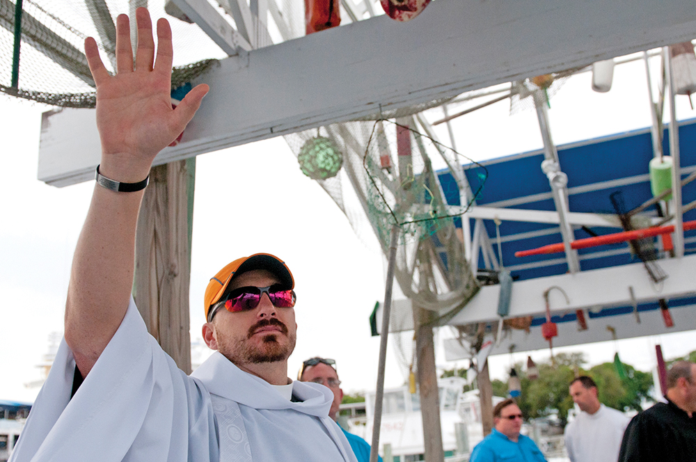 Ascension Day this year fell on May 13, 2021, and the “blessings” began at 4 p.m. on the docks behind Brotula’s Restaurant with a Captains’ Worship and Prayer Service. Following the service, local clergy proceeded to the dock to bless those vessels which had pre-registered.