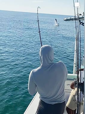 The Tarpon have arrived! A bucket list fish for many anglers, Tarpon are most commonly found in south Florida but our area sees a passing migration during June and July. You’ll find them swimming nearshore, by the beaches in large schools. Often you’ll see them “rolling” on top of the water, while they feed and they are one of the only fish to break the surface to gulp breaths of air – partly why they can fight for so long while being hooked up.