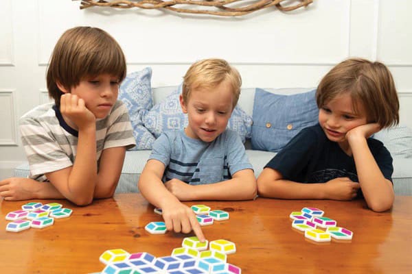 Stellö — a colorful pattern-building game that sharpens logic and spatial reasoning. Players match tiles based on shapes and colors, kind of like dominoes with a creative twist. It’s perfect for developing critical thinking — and it’s just as fun for grown-ups, too!