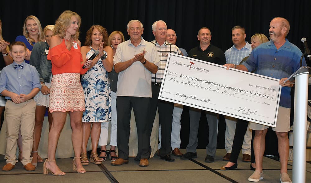 Destin Charity Wine Festival At the Foundation’s recent annual check presentation, a record-breaking $3 million was donated to DCWAF’s 16 benefiting charities including AMIkids Emerald Coast, Boys and Girls Clubs of the Emerald Coast, Children in Crisis, Inc., Children’s Volunteer Health Network, Emerald Coast Autism Center, Emerald Coast Children’s Advocacy Center, Food for Thought Outreach, Inc., Habitat for Humanity of Walton County, Mental Health Association of Okaloosa and Walton Counties, Opportunity Place, Inc., Pathways for Change, Sacred Heart Hospital of the Emerald Coast, Shelter House of Northwest Florida, The Arc of the Emerald Coast, Westonwood Ranch and Youth Village.