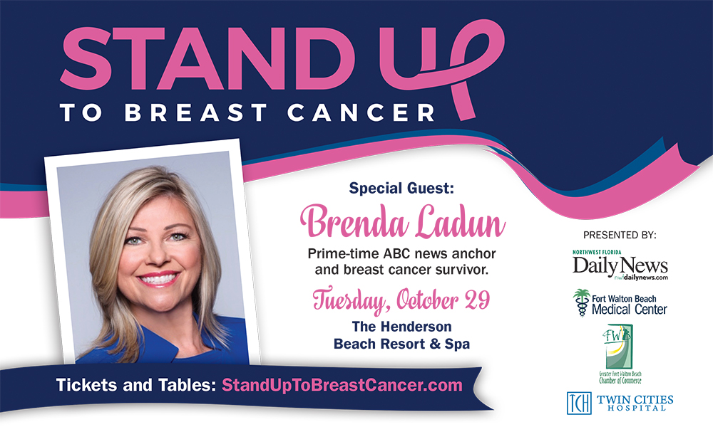 As part of Fort Walton Beach Medical Center and Twin Cities Hospital’s Breast Cancer Awareness month activities, the Stand Up to Breast Cancer dinner will be held on Tues., Oct. 29 at The Henderson Beach Resort in Destin from 5:30-8:30 p.m. Tickets and tables are available at www.StandUpToBreastCancer.com. This event reaches women and men, alike, to raise awareness of the importance of early detection.