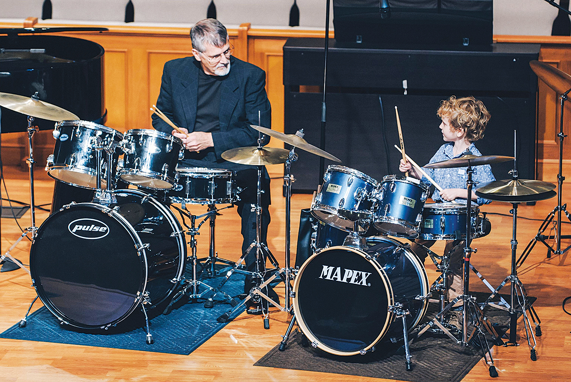 The drums are one of the most social instruments out there. The process of moving our bodies to a beat (for example when we dance or tap our foot) is called “entrainment.” There is some evidence that this is in our genes, as studies show even newborn babies can entrain to a beat. When a group of people all entrain to the same beat, all moving in sync, our social bonds become stronger, and we build trust and connection throughout the whole group. This reminds me of line dancing with friends at a fun event. As a drummer, you are given the amazing opportunity to be the backbone of the music, leading the beat, and making a rhythmic connection with everyone in the room.