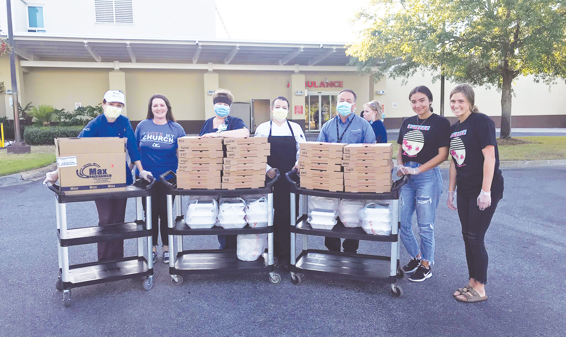 Destiny Worship Center is feeding hospitals by sending more than 200 healthcare workers a meal each week. If you know of a healthcare worker, someone age 60+ in need of assistance or someone who needs prayer, visit DestinyWorshipCenter.com. To help the Emerald Coast Children’s Advocacy Center (ECCAC) in Niceville and the Pierce Family Center in DeFuniak Springs, Distillery 98, located in Santa Rosa Beach, donated five gallons of sanitizer. Velia Lala, an ECCAC board member and owner of Velia Lala Designs in Ft. Walton Beach, along with her team, have been making face masks and have donated over 70 facemasks in the past several weeks.