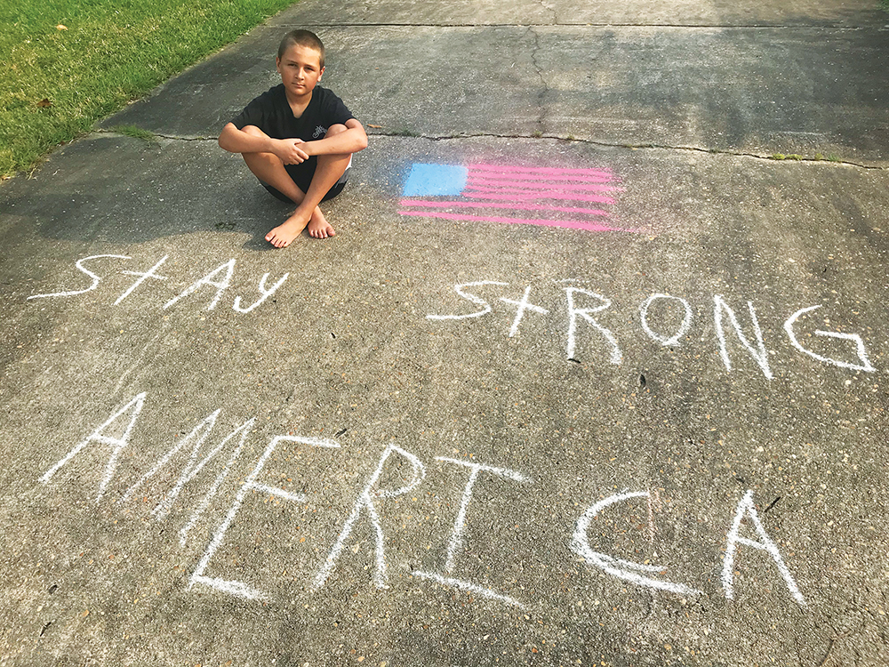 And some are simply doing their best to cheer folks up! After finishing homeschool work, local resident Diana Graham (aka Nana) and her grandson, Conor, were discussing how people are feeling during the negative Corona “chatter” and some of the little things people are doing to help others feel better. “When I told him about kids up north doing chalk messages, he immediately started making up his own and drawing ideas on the driveway,” said Diana. The result? An uplifting message that gave passersby by a comforting pause. “Nana” noticed that almost all letters were capitalized, except the t’s. “They stood out to me like crosses and I’m sure Conor brightened the day for anyone who drove by and waved.” Mission accomplished!