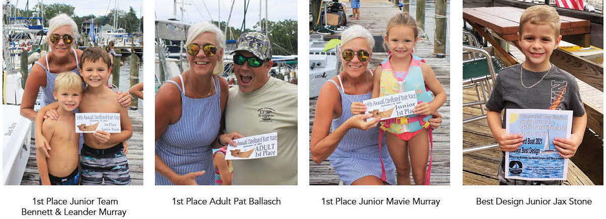 Bluewater Bay Marina hosted its 14th Annual Cardboard Boat Race in September. It was a beautiful day on the docks with perfect weather and a crowd lining the docks to cheer on the participants. Twelve juniors (under 12) participated in the race and three adults raced.